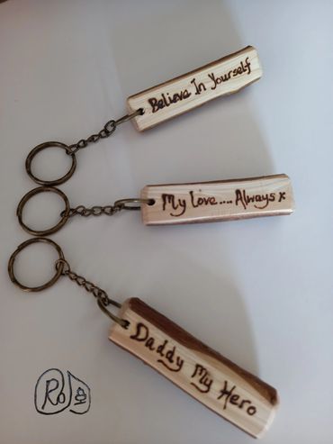 FROM £3.50 EACH. Click on the photos below for individual prices, sizes and gallery numbers (top left corner). Can be personalised for no extra charge. Contact Me with the gallery number of any log key rings you like. Shipping is £1.05 for Royal Mail Large Letter 2nd Class.
